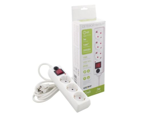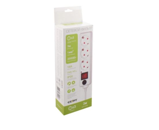 Сетевой фильтр СТАРТ 6932349210441 С/УД-Ф SP 3x3 3р3м с заземлением и защитой от детей сечение провода 3х1мм2, длина провода 3м