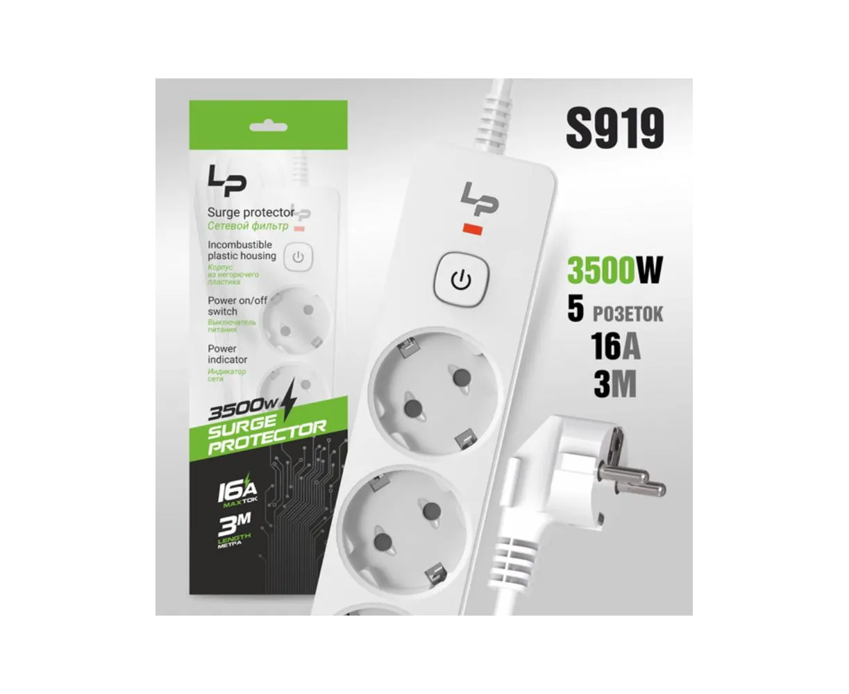 Сетевой фильтр-удлинитель Live-Power LP5140 5розеток С/З 16А с выкл. 3м white