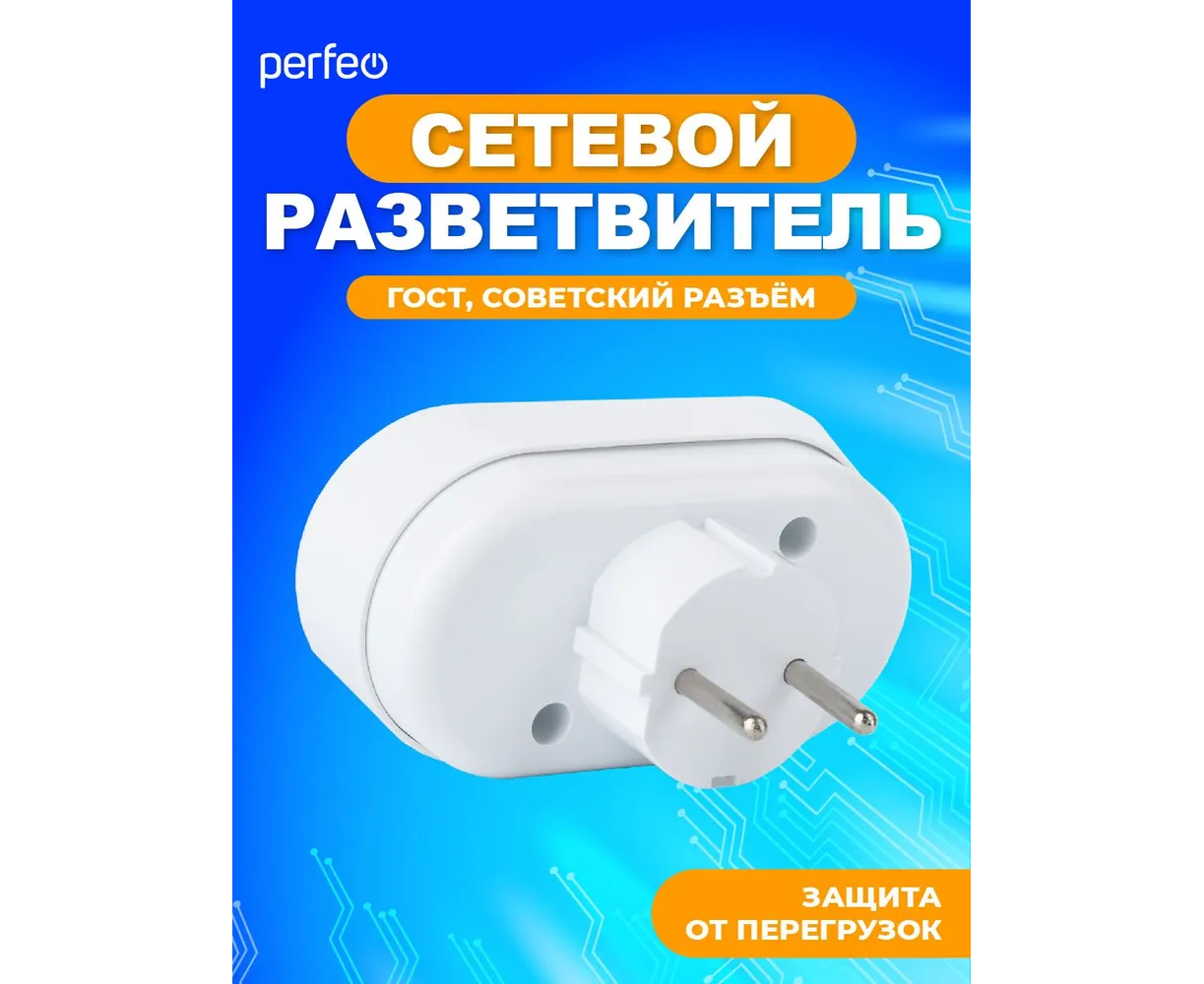 Сетевой разветвитель Perfeo "RU POWER'' 2 гнезда, 6А, без заземления, (2Т), белый