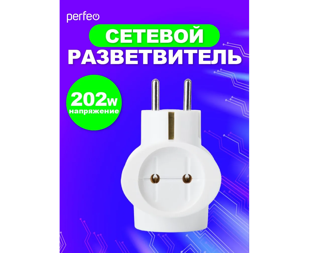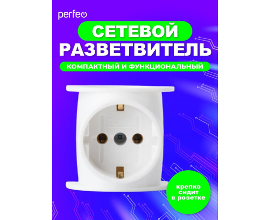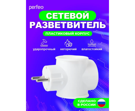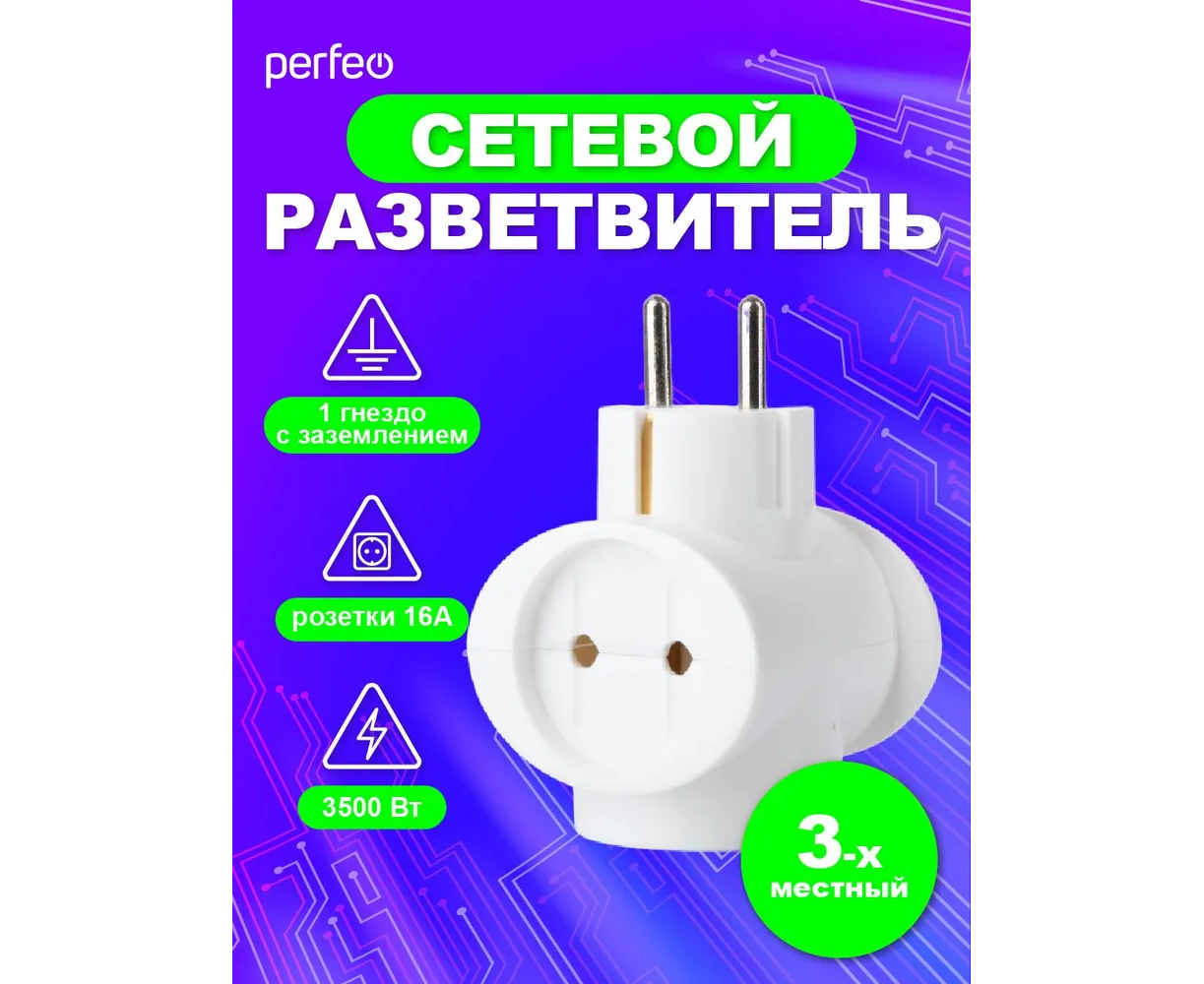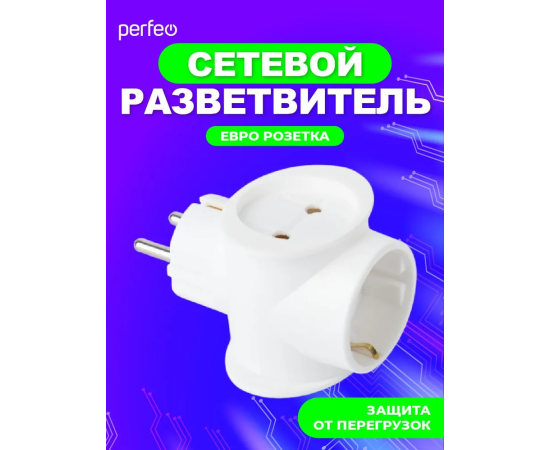 Сетевой разветвитель Perfeo "RU POWER'' 3 гнезда, 16А, 1гн/з, 2гн/бз, (3T1), белый