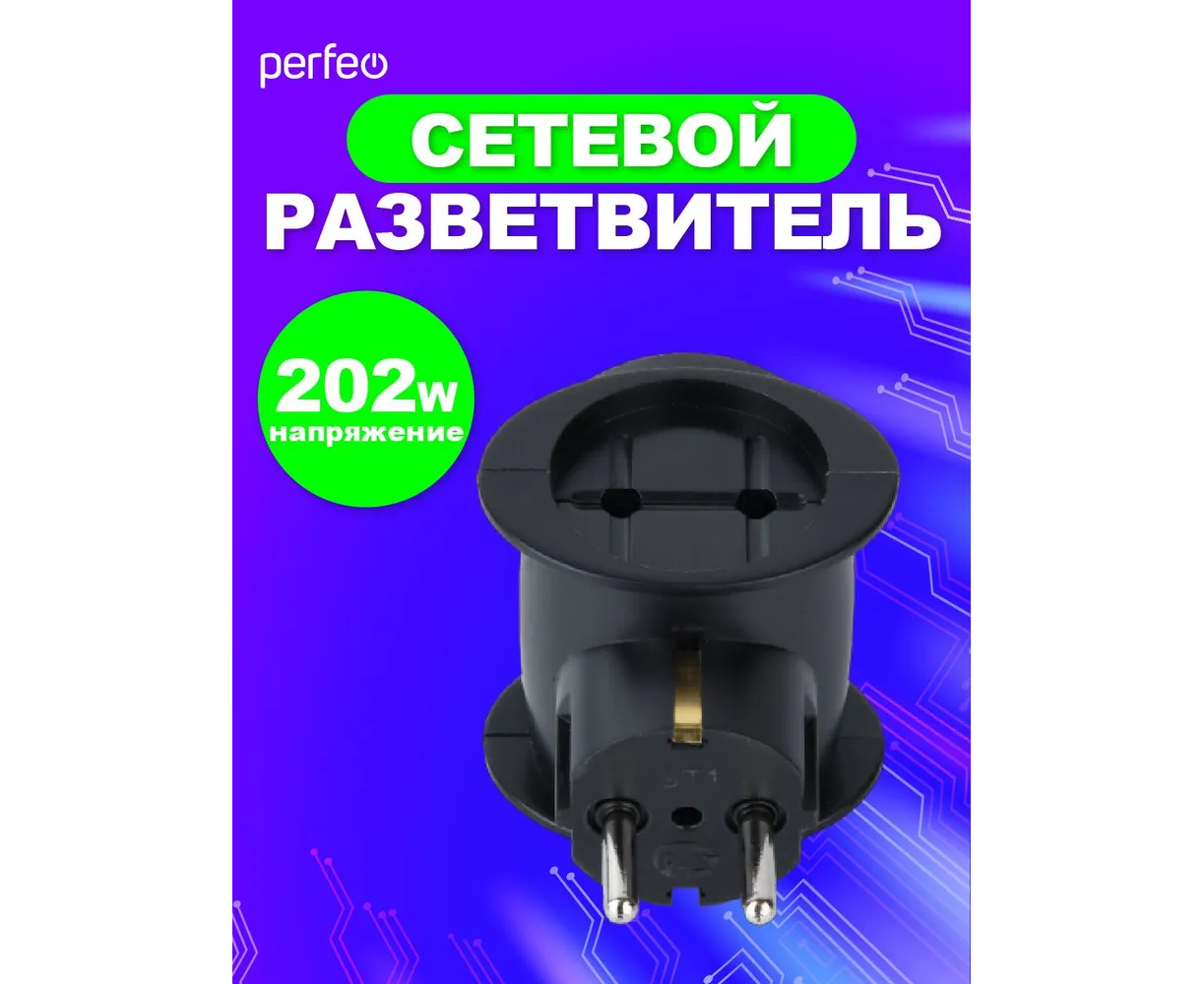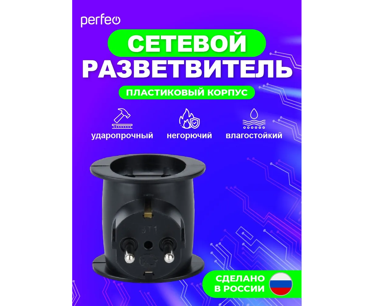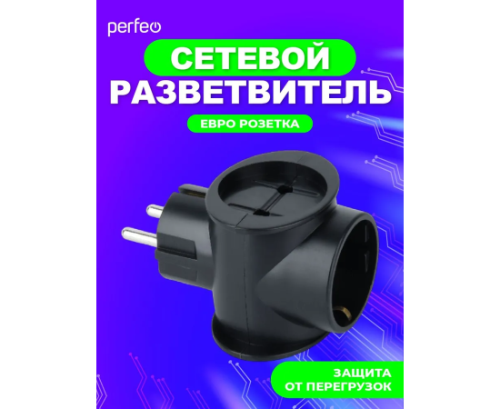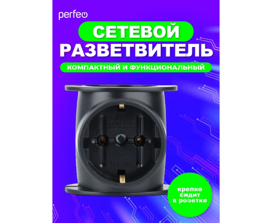 Сетевой разветвитель Perfeo "RU POWER'' 3 гнезда, 16А, 1гн/з, 2гн/бз, (3T1), черный