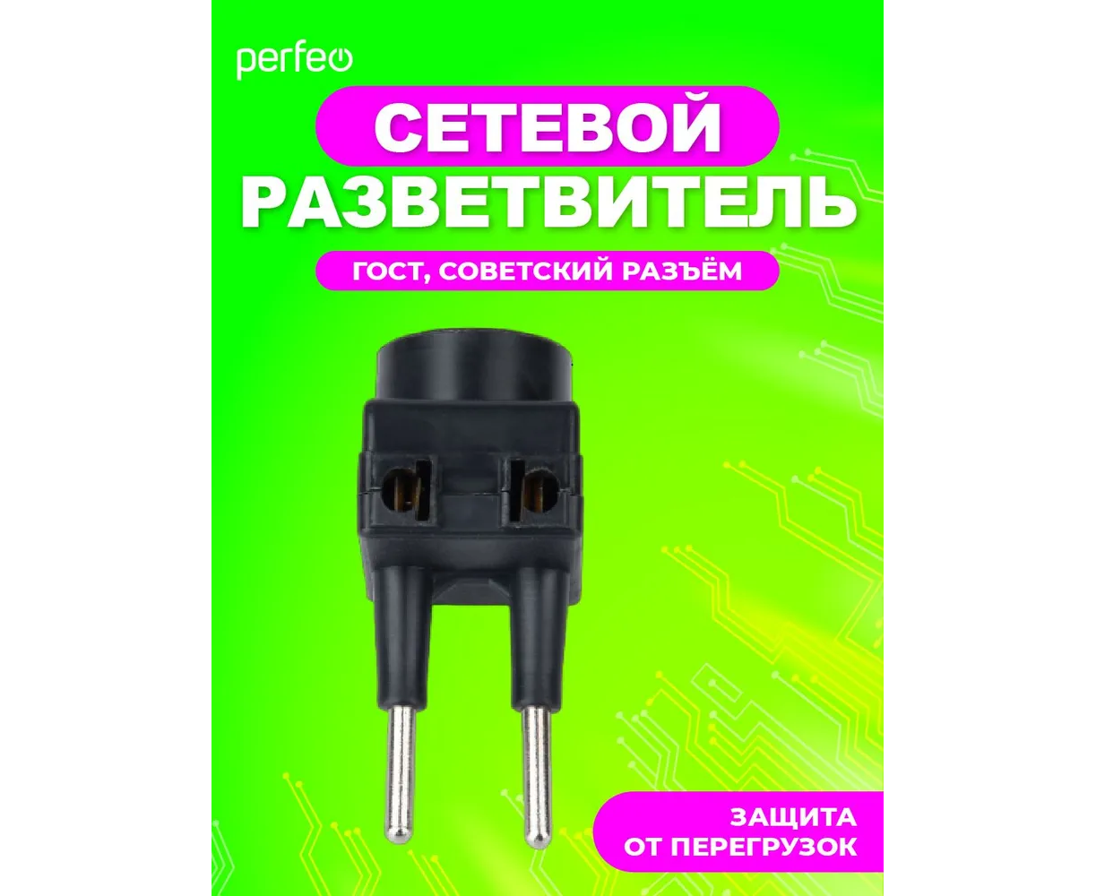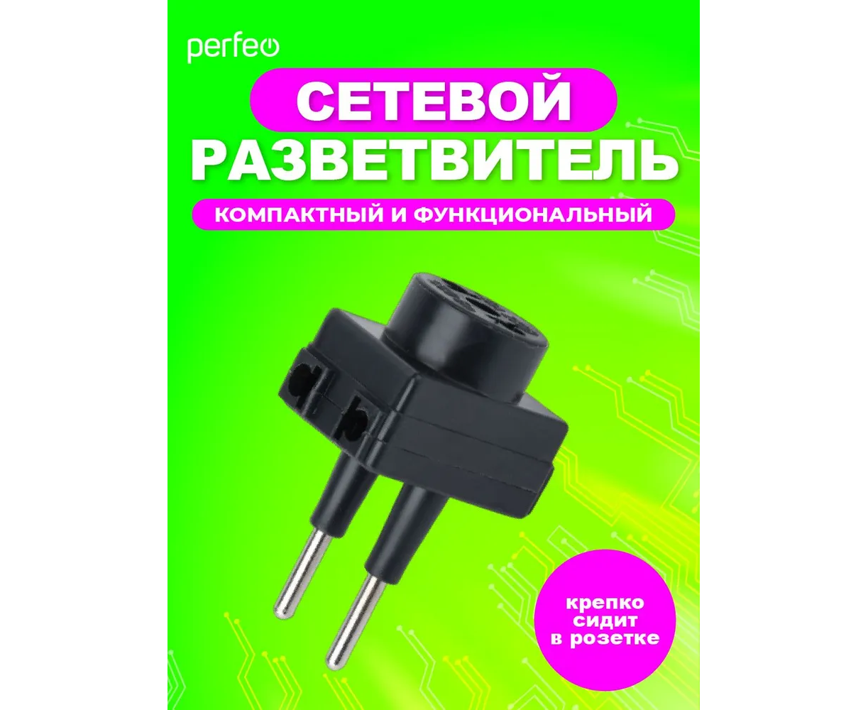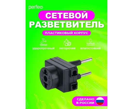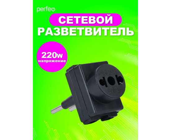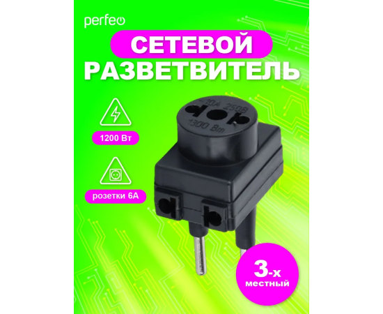 Сетевой разветвитель Perfeo "RU POWER'' 3 гнезда, 6А, без заземления, (3ТМ), черный
