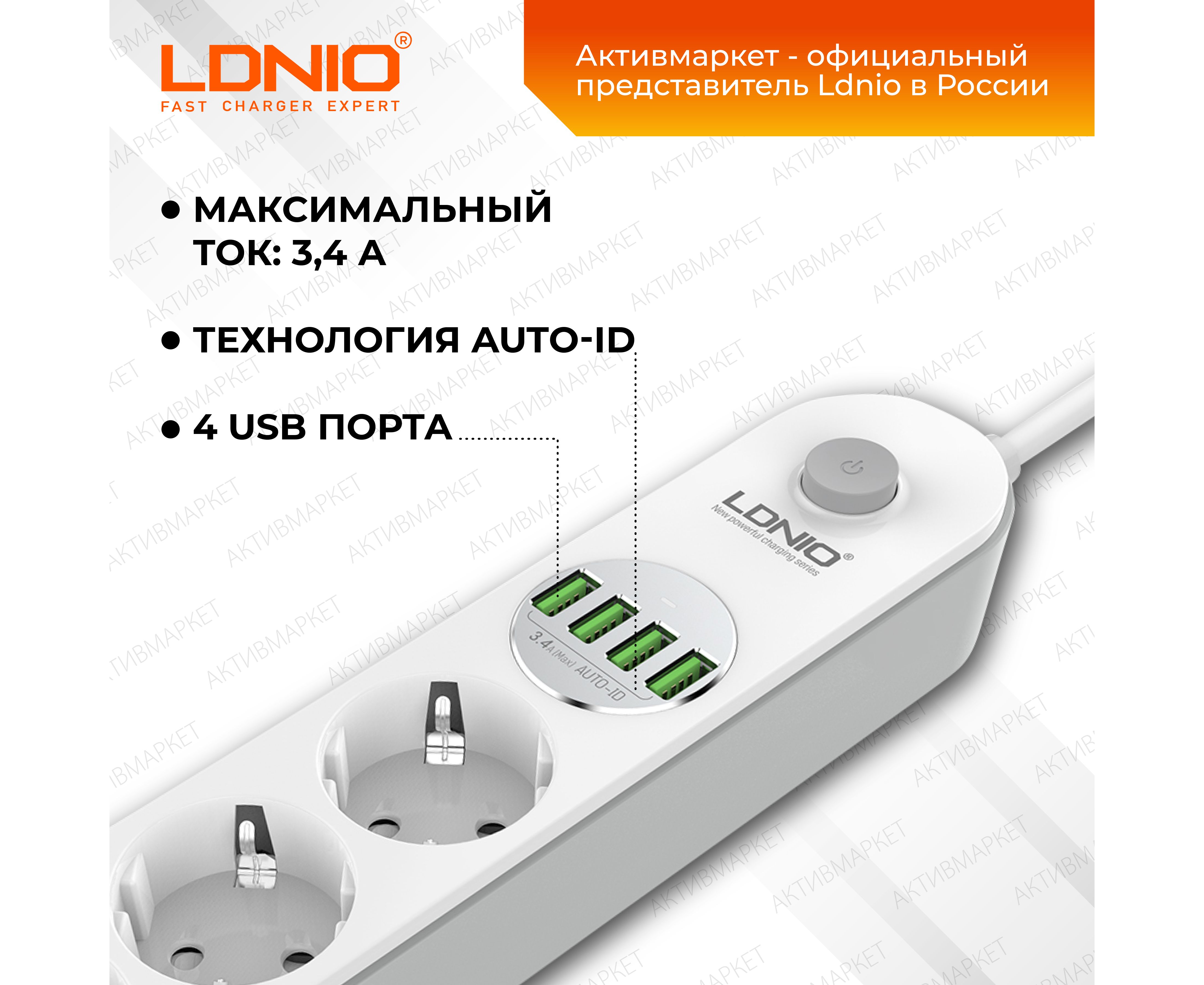 Данная модель - сетевой удлинитель с функцией умной зарядки Ldnio SE4432 - 4 розетки и 4 USB порта с защитой от перегрузки, короткого замыкания и перегрева. Максимальная мощность подключаемых устройств – 2500 Вт. Удлинитель имеет провод длиной 4 метра и единый выключатель, что позволяет удобно регулировать подключенные устройства. Этот умный тройник с 4 электрическими розетками позволяет подключать не только компьютер и ноутбук, но также и другую технику и аксессуары. Все розетки оснащены специальными защитными шторками от детей – вы можете быть уверены, что никакие посторонние предметы не коснутся контакта под напряжением. 4 USB разъема обеспечивают зарядку электронных гаджетов таких, как телефоны, смартфоны, планшеты и многие другие. Уникальная технология Auto-ID для USB портов автоматически определяет подключенное устройство и заряжает его максимальным током. В отличие от многих других сетевых фильтров, предлагаемых на рынке, продукция Ldnio изготавливается из специального негорючего пластика, который сохраняет пожаробезопасность до температуры 750 градусов С. Выключатель устройства помогает экономить электроэнергию, а противоскользящие ножки обеспечивают надежность и безопасность при использовании. Благодаря элегантному дизайну и компактным размерам, он легко помещается в любом месте дома и можно использовать как в стационарном положении, так и в путешествиях или командировках. Вы можете добавить карточку в избранное, а когда будет проходить очередная акция - Вы сможете купить этот удлинитель с выгодной скидкой и по лучшей цене.