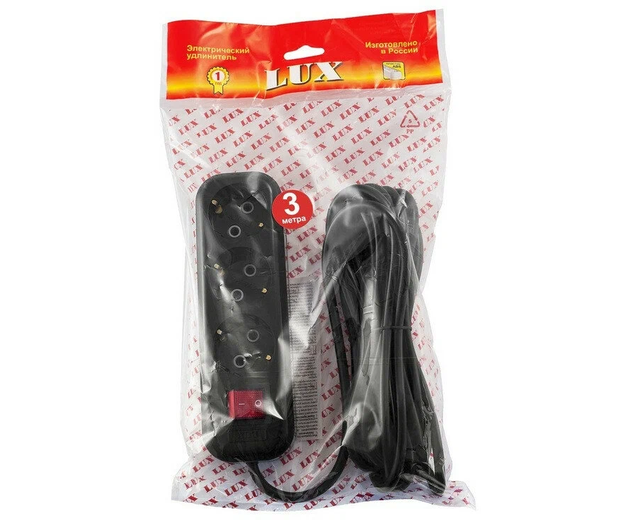 Сетевой удлинитель LUX У3-ЕВК-03 3-местный с з/к (250В/16а/3м) Черный