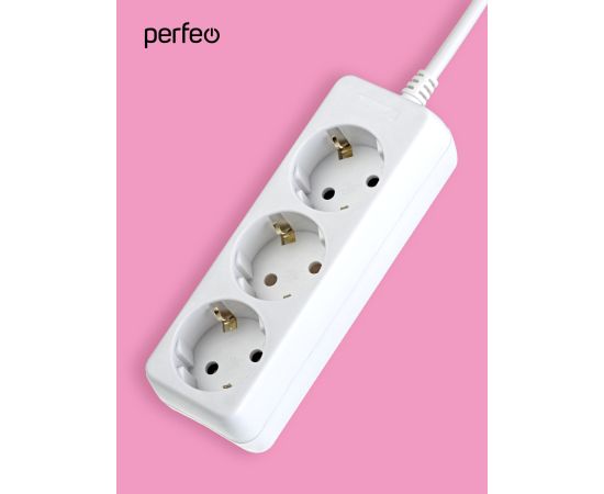 Сетевой удлинитель Perfeo "POWERMATE", 1,5м, 3 розетки, с заземлением, (PF-PE-3/1,5-W), белый