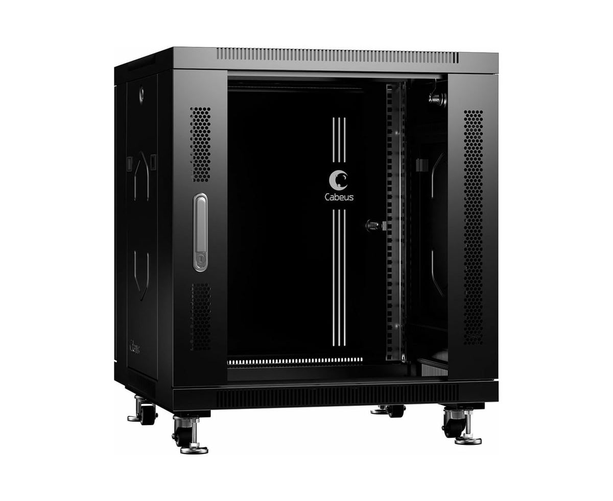 Шкаф коммутационный CABEUS SH-05C-12U60/60-BK напольный, стеклянная передняя дверь, 12U, 600x730x600 мм