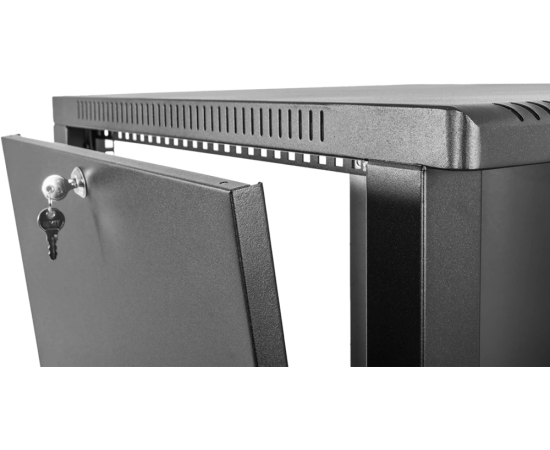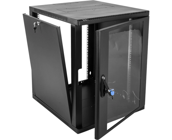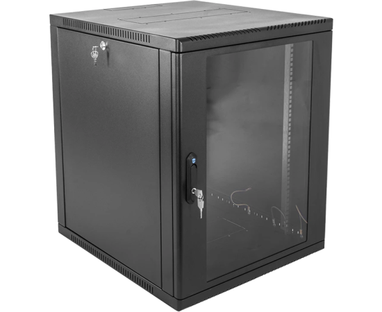 Шкаф коммутационный ЦМО ШРН-12.650-9005 настенный 12U 600x658мм пер.дв.стекл 200кг черный 600мм 25.11кг 180град. 612мм металл