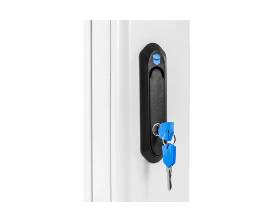 Настенный шкаф 19" ШРН имеет цельнометаллическую сварную конструкцию, он удобен для быстрой установки и монтажа оборудования, так как не требует сборки. Отсутствие острых углов с фронтальной стороны повышают безопасность при эксплуатации и обслуживании шкафов, что помогает исключить человеческие травмы при соприкосновении со шкафом. Комплектация дверью с тонированным ударопрочным стеклом. Новая конструкция стеклянной двери с механическим креплением стекла увеличивает её жесткость, и обеспечивает легкую замену стекла при его повреждении. Возможна установка двери, как с правой, так и с левой стороны. Новый усиленный точечный замок с поворотной ручкой увеличивает жесткость фиксации двери в закрытом положении и защиту от несанкционированного доступа, а также обеспечивает удобство при её открывании.