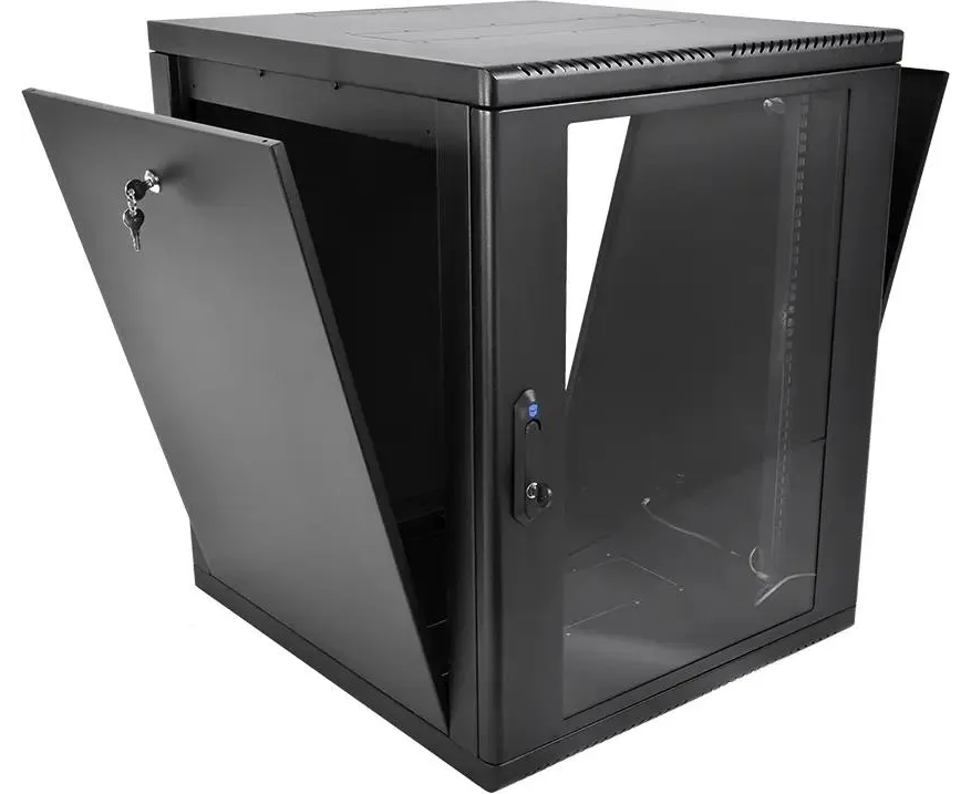 Шкаф коммутационный ЦМО ШРН-М-12.500-9005 настенный 12U 600x520мм пер.дв.стекл 130кг черный 456мм 21.6кг 180град. 610мм