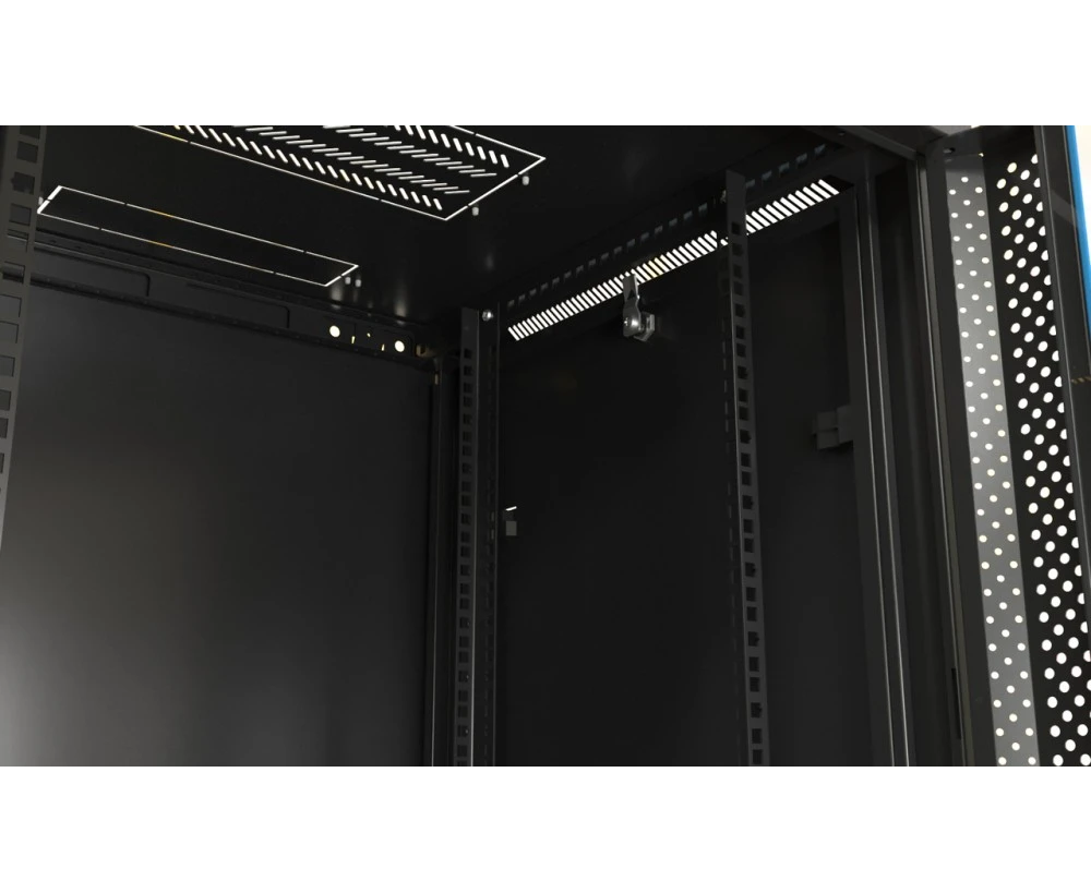 холоднокатаная сталь (SPCC), толщина стальных компонентов: рама каркаса, нижняя панель, задняя панель, передняя дверь, боковые панели, верхняя панель - 1,2 мм; горизонтальный монтажный профиль - 1,5 мм; 19" монтажный профиль - 2,0 мм