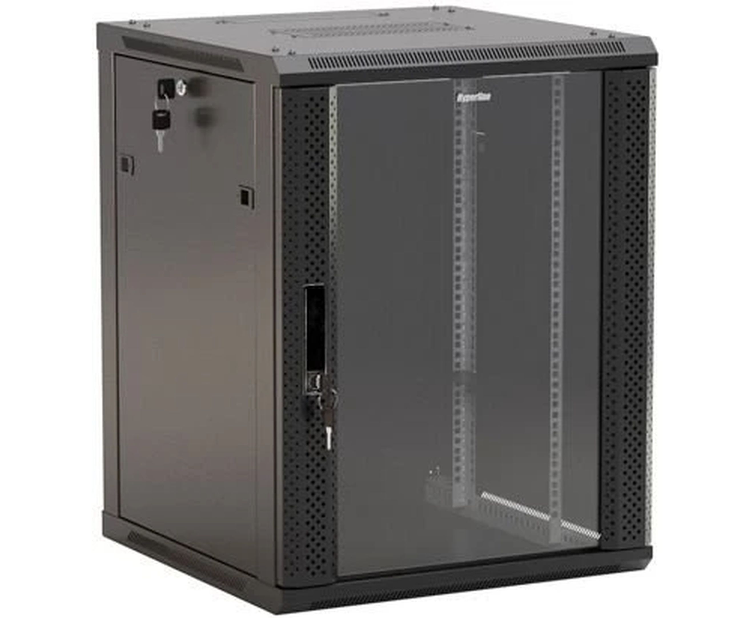 Шкаф коммутационный Hyperline (TWB-1266-GP-RAL9004) настенный 12U 600x600мм пер.дв.стекл 2 бок.пан. 60кг черный 650мм IP20 сталь