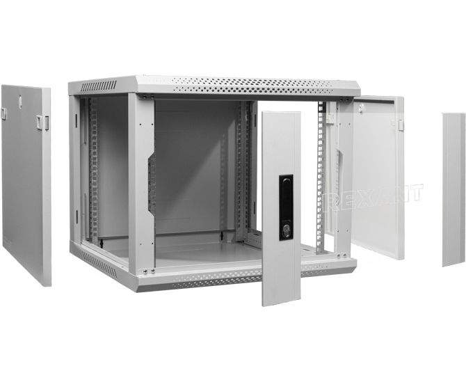 Шкаф коммутационный REXANT 04-1266-111 настенный, стеклянная передняя дверь, 12U, 600x635x600 мм