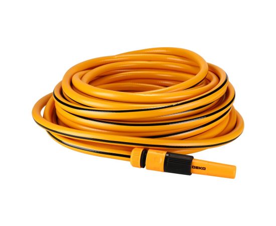 Шланг для полива усиленный DEKO DKI20 предназначен для использования в саду. Шланг выполнен из высококачественных материалов, поэтому выдерживает давление до 25 бар. Выполнен из трёх слоев ПВХ, что обеспечивает износостойкость, гибкость и устойчивость шланга к воздействию солнца. Сохраняет свою гибкость и не перекручивается при использовании.
