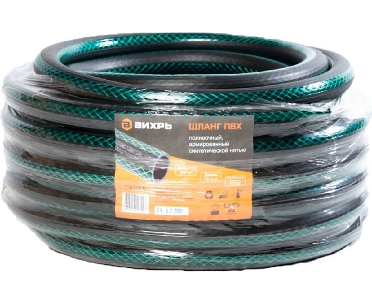 Шланг поливочный Вихрь 73/7/2/9 ПВХ трехслойный армированный 3/4, 15м (зелёный)