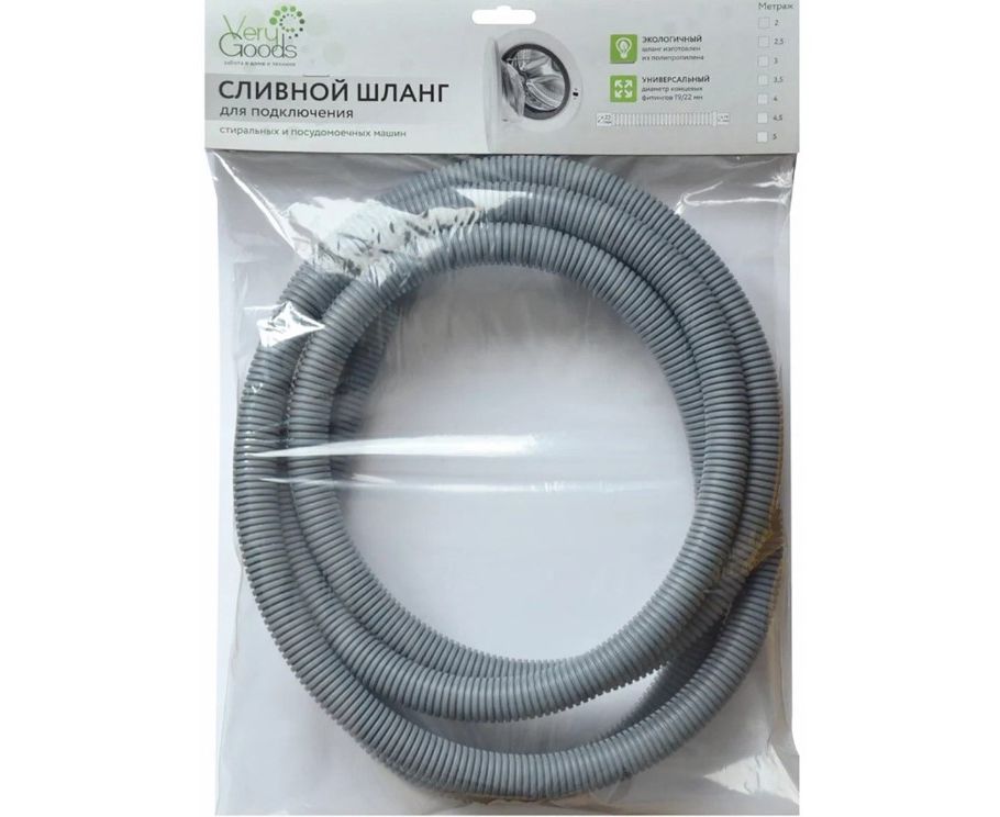 Шланг сливной предназначен для слива отработанной воды из посудомоечных и стиральных машин.