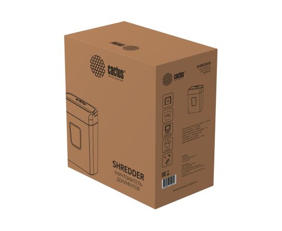 Шредер Cactus CS-SH-C2 черный (секр.P-4) фрагменты 8лист. 13лтр. скрепки скобы пл.карты
