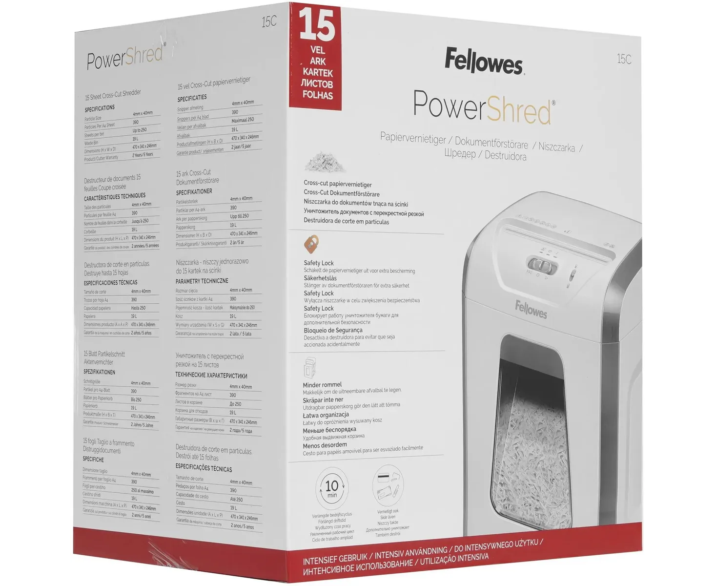 Шредер Fellowes PowerShred 15С белый секр.P-4 фрагменты 15лист. 19лтр. скрепки скобы пл.карты