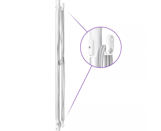 Паровая швабра обладает функцией вертикальной парковки. На удлинительной ручке предусмотрены держатели для шнура.
