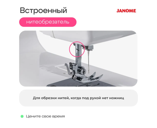 -Встроенный нитеобрезатель (находится на стержне лапкодержателя сзади)