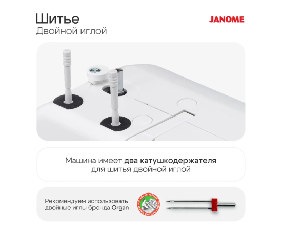 -Возможность шитья двойной иглой (иглы с межигольным расстоянием не больше 4 мм)