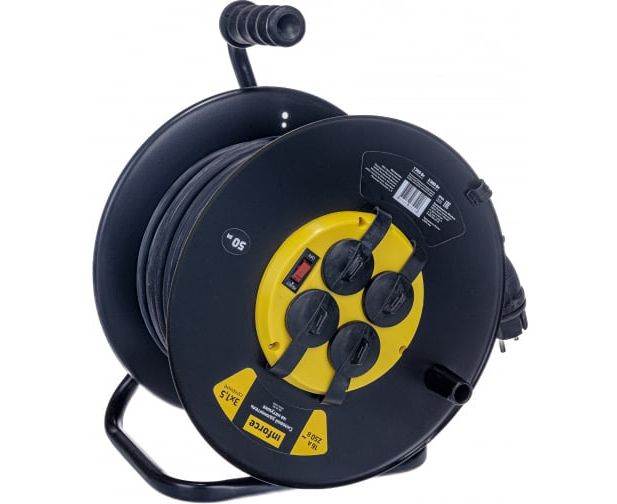 Силовой удлинитель на катушке Inforce 4 гнезда, с/з КГт 3х1,5 16A 50м IP44 09-15-02 предназначен для использования в тяжелых условиях. Удлинитель можно применять на стройках, на производстве, а так же на открытом воздухе.