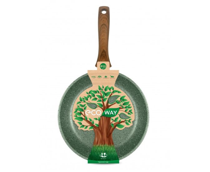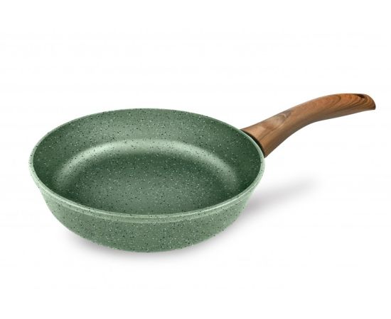 Сковорода выполнена в натуральном зеленом цвете и комплектуется эргономичной ручкой с имитацией дерева.