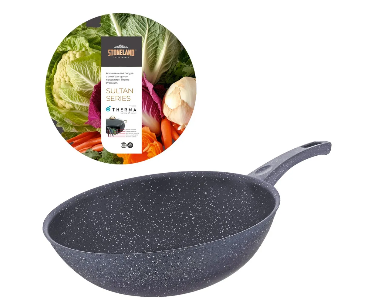 Сковорода Вок STONELAND SLW-0826DA (Темный антрацитДаКованный алюминий)