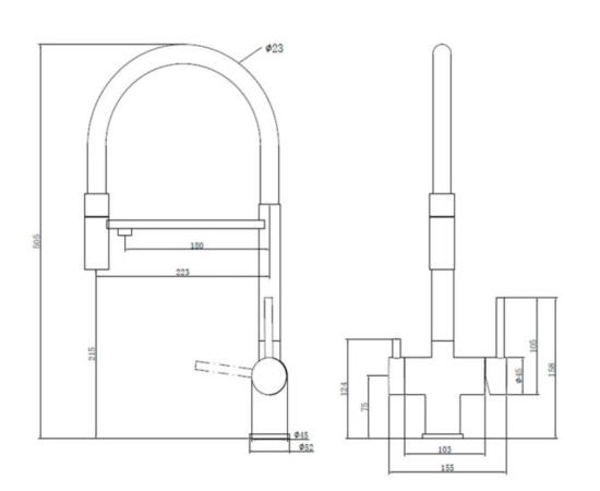 Высота излива, мм 505