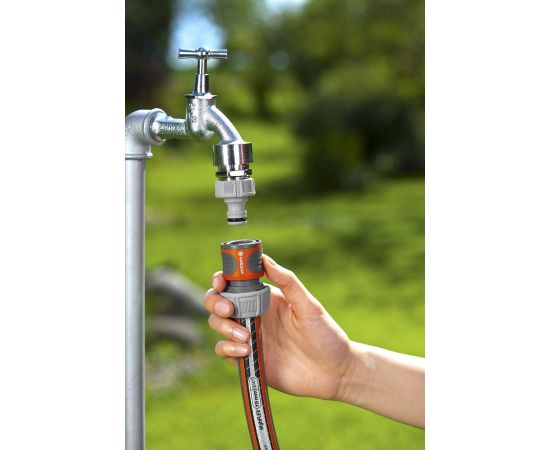 Коннектор легко снимается, если его потянуть на себя. Поверхность из мягкого рифленого пластика коннектора GARDENA позволяет удобно и крепко удерживать инструмент в руке. Коннектор снабжен резиновым кольцом, обеспечивающим защиту от повреждений.