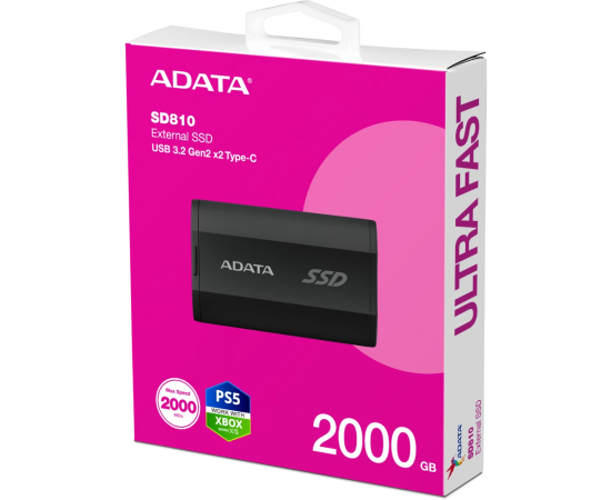 SSD A-DATA SD810 (SD810-2000G-CBK) 2TB, External, USB 3.2 Type-C, R/W -2000/2000 MB/s черный