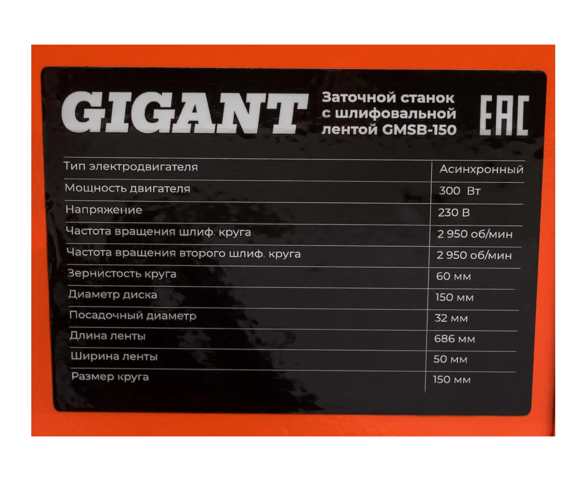 Станок заточной Gigant GMSB-150 с шлифовальной лентой D-150мм