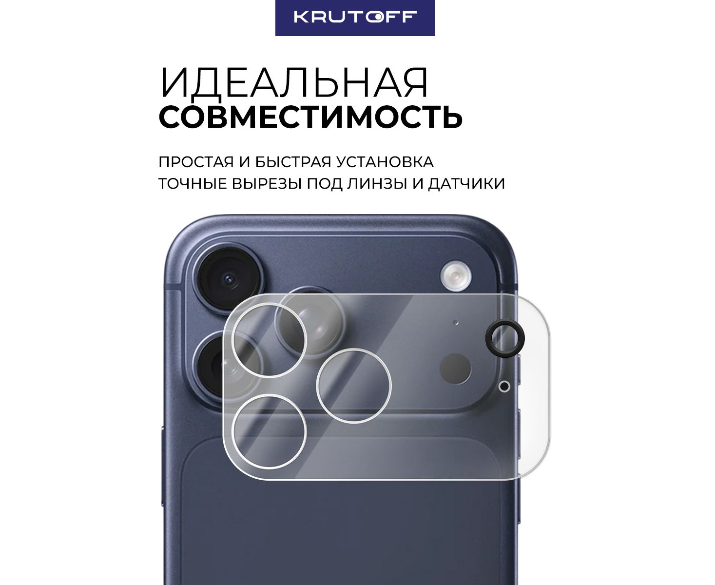 Стекло защитное Full Glue Premium Krutoff для камеры iPhone 17 Pro Max белые линзы