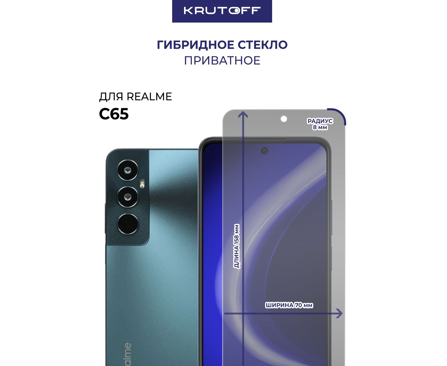 Стекло защитное гибридное Антишпион Krutoff для Realme C65