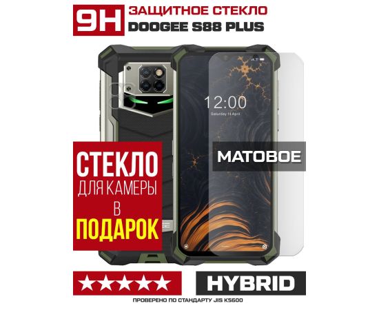 Стекло защитное гибридное МАТОВОЕ Krutoff для Doogee S88 Plus + защита камеры (2 шт.)