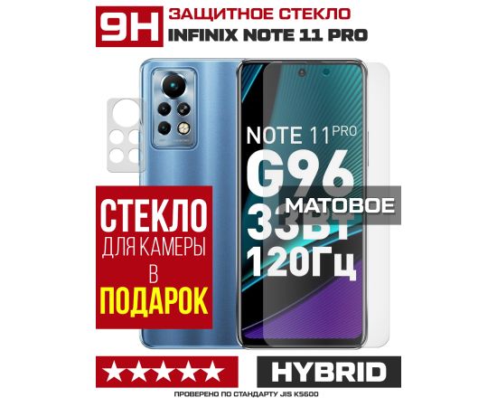Стекло защитное гибридное МАТОВОЕ Krutoff для INFINIX Note 11 Pro + защита камеры (2 шт.)