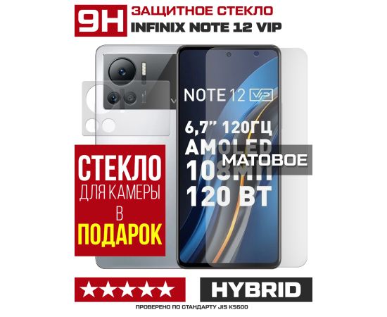 Стекло защитное гибридное МАТОВОЕ Krutoff для INFINIX Note 12 VIP + защита камеры (2 шт.)