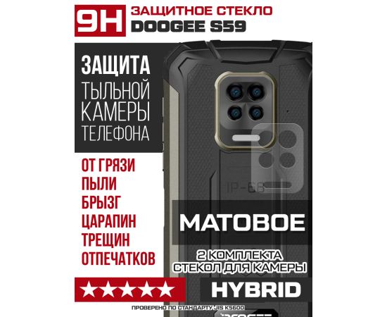Стекло защитное гибридное МАТОВОЕ Krutoff для камеры Doogee S59 (2 шт.)