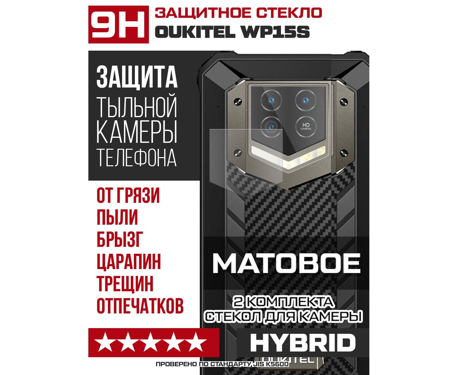 Стекло защитное гибридное МАТОВОЕ Krutoff для камеры Oukitel WP15s (2 шт.)