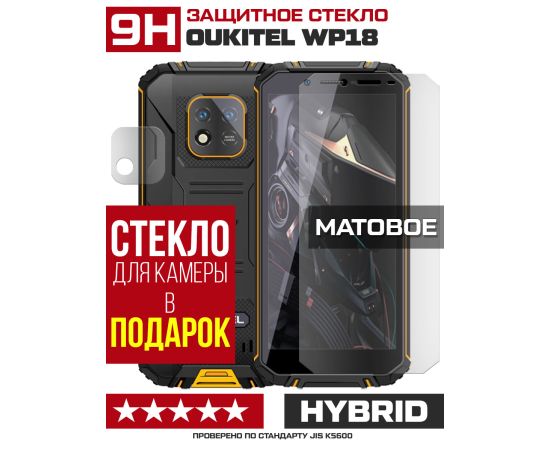 Стекло защитное гибридное МАТОВОЕ Krutoff для Oukitel WP18 + защита камеры (2 шт.)