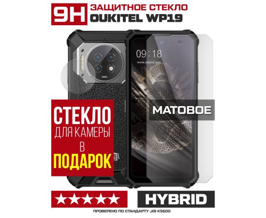 Стекло защитное гибридное МАТОВОЕ Krutoff для Oukitel WP19 + защита камеры (2 шт.)