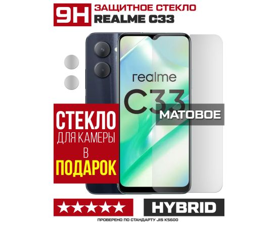 Стекло защитное гибридное МАТОВОЕ Krutoff для Realme C33 + защита камеры (2 шт.)