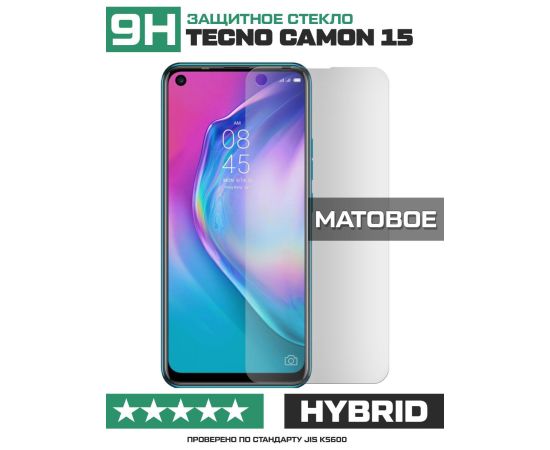 Стекло защитное гибридное МАТОВОЕ Krutoff для Tecno Camon 15