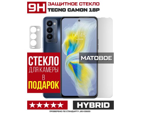 Стекло защитное гибридное МАТОВОЕ Krutoff для Tecno Camon 18P + защита камеры (2 шт.)
