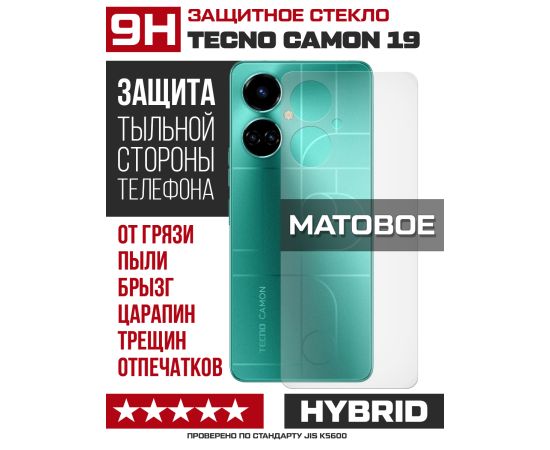 Стекло защитное гибридное МАТОВОЕ Krutoff для Tecno Camon 19 задняя сторона