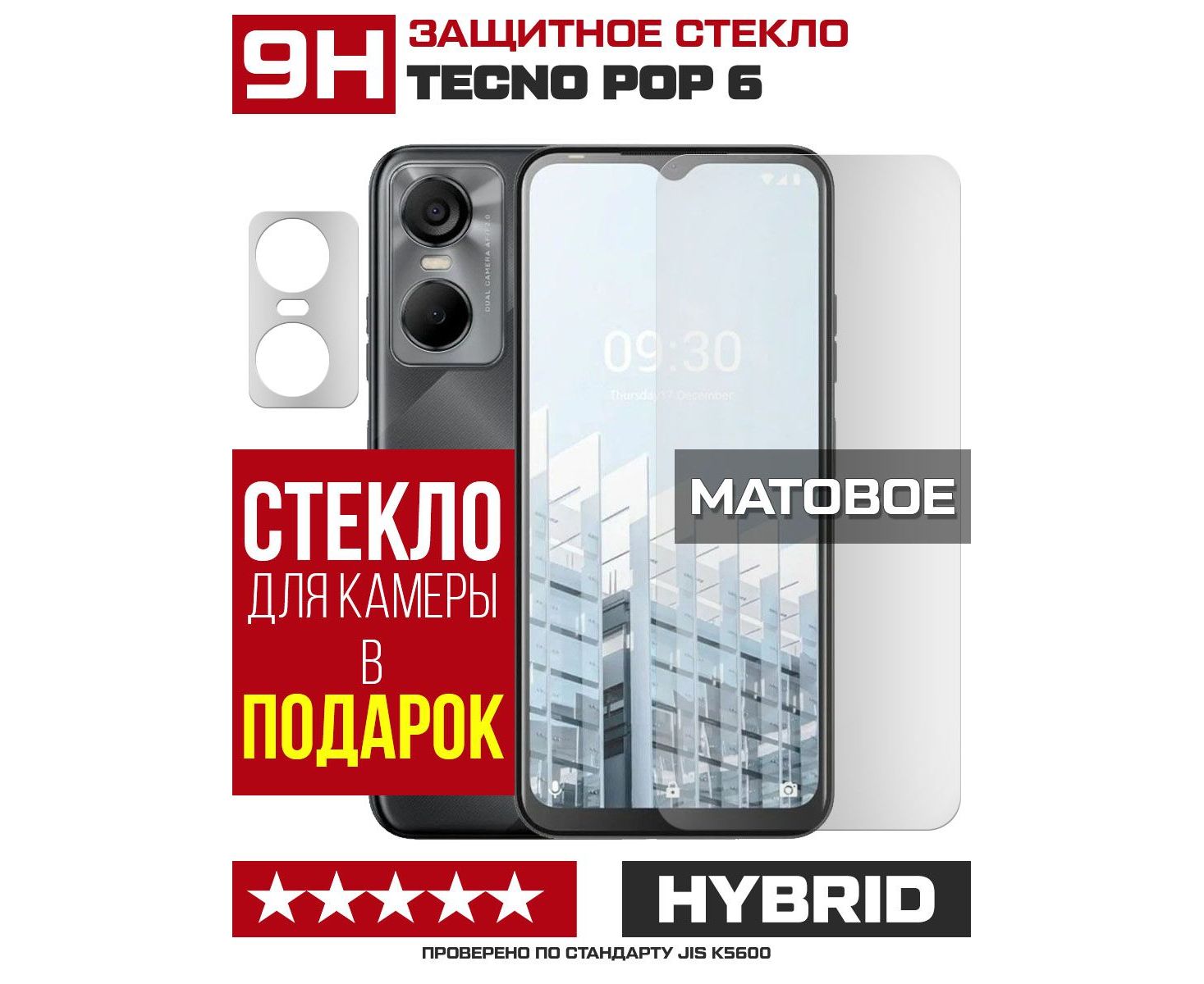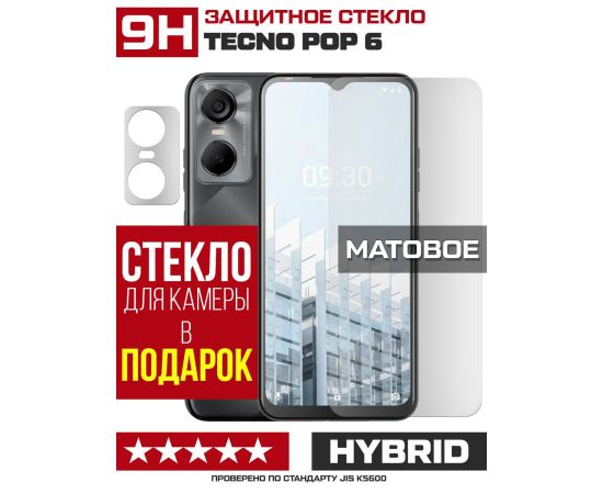 Стекло защитное гибридное МАТОВОЕ Krutoff для Tecno POP 6 + защита камеры (2 шт.)
