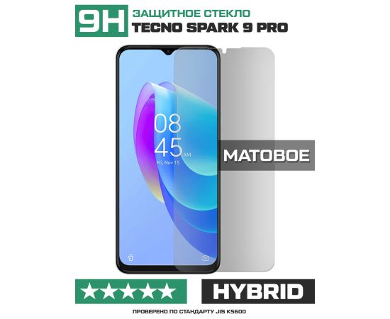 Стекло защитное гибридное МАТОВОЕ Krutoff для Tecno Spark 9 Pro Sport