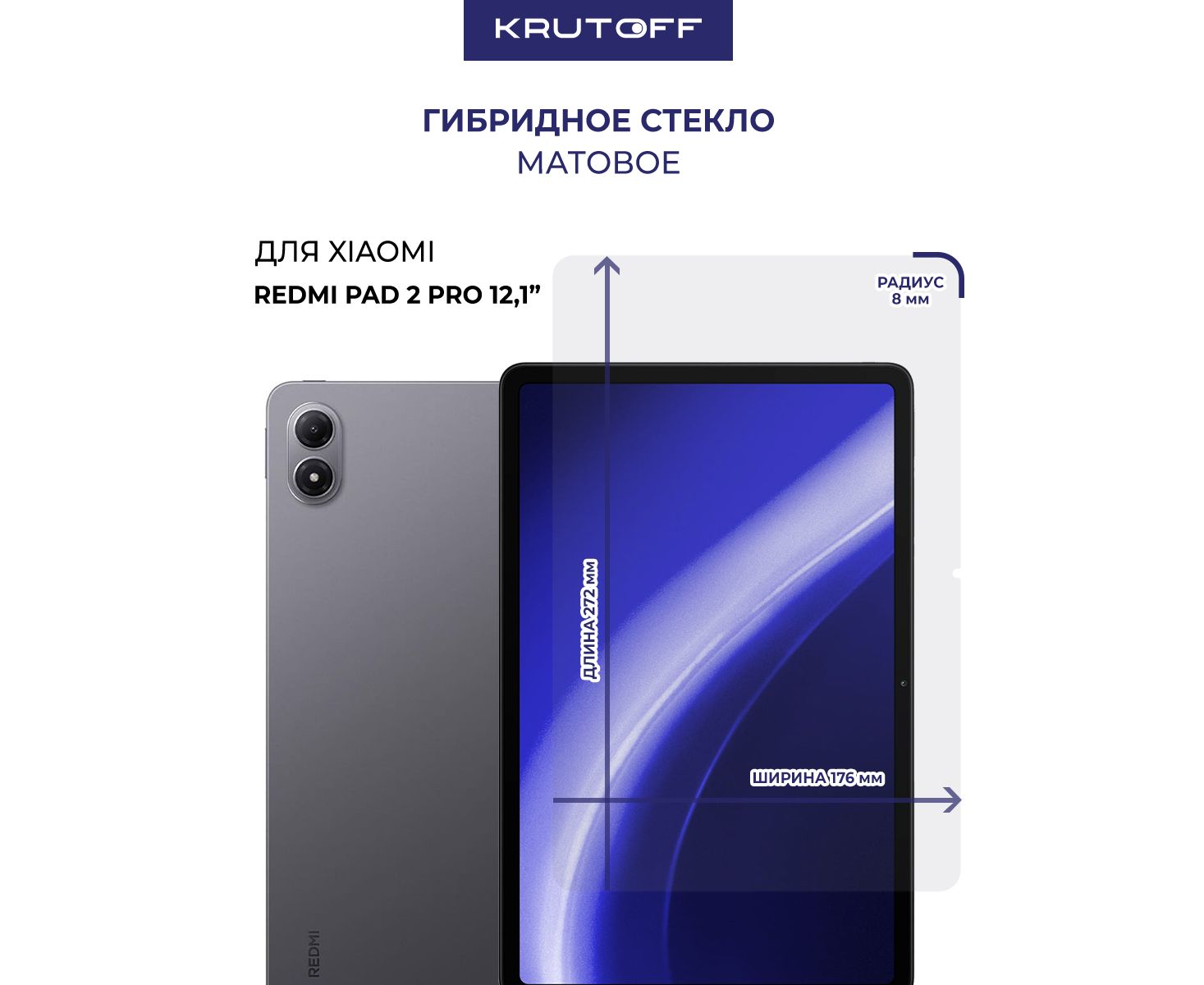 Стекло защитное гибридное МАТОВОЕ Krutoff для Xiaomi Redmi Pad 2 Pro 12.1"