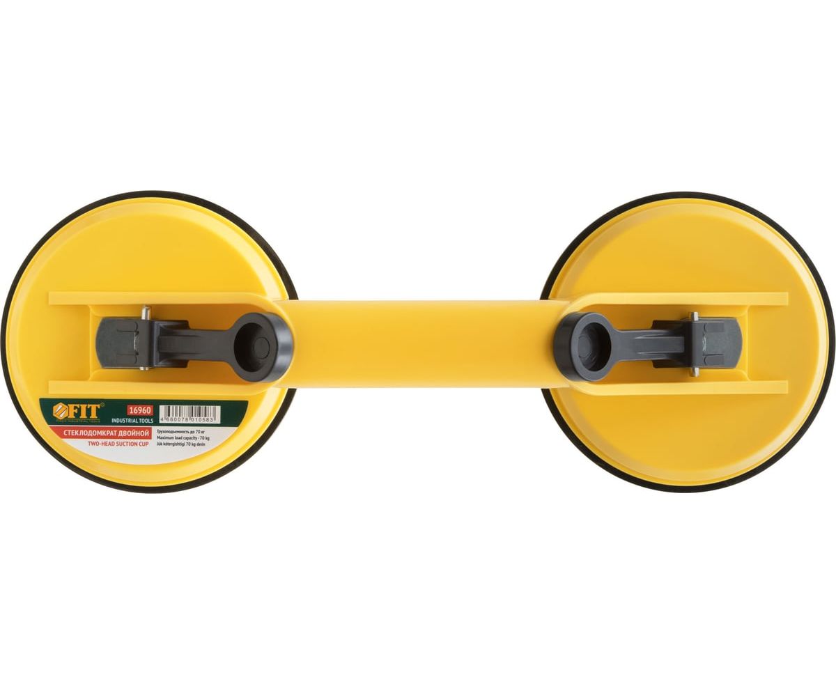 Двойной стеклодомкрат FIT IT 16960 - простой инструмент, который используется для переноски и монтажа стекол, глазурованной кафельной плитки и пластика. Данная модель имеет вакуумный принцип работы. Резиновые присоски обеспечивают мягкий контакт с изделием не повреждая его. Стеклодомкрат легко транспортируется одним человеком.