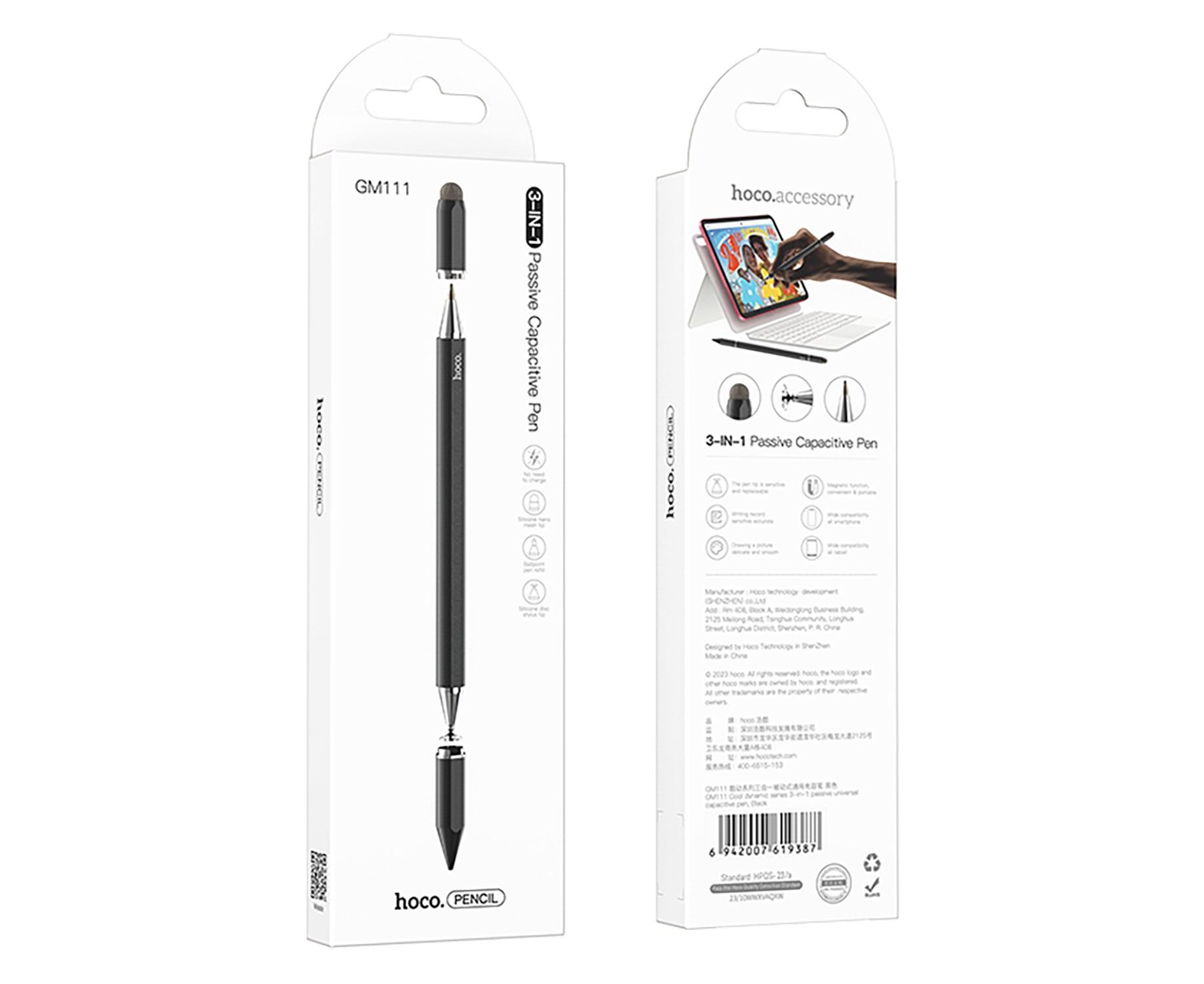 Стилус Hoco GM111 Cool 3-in-1 (black) (240154)