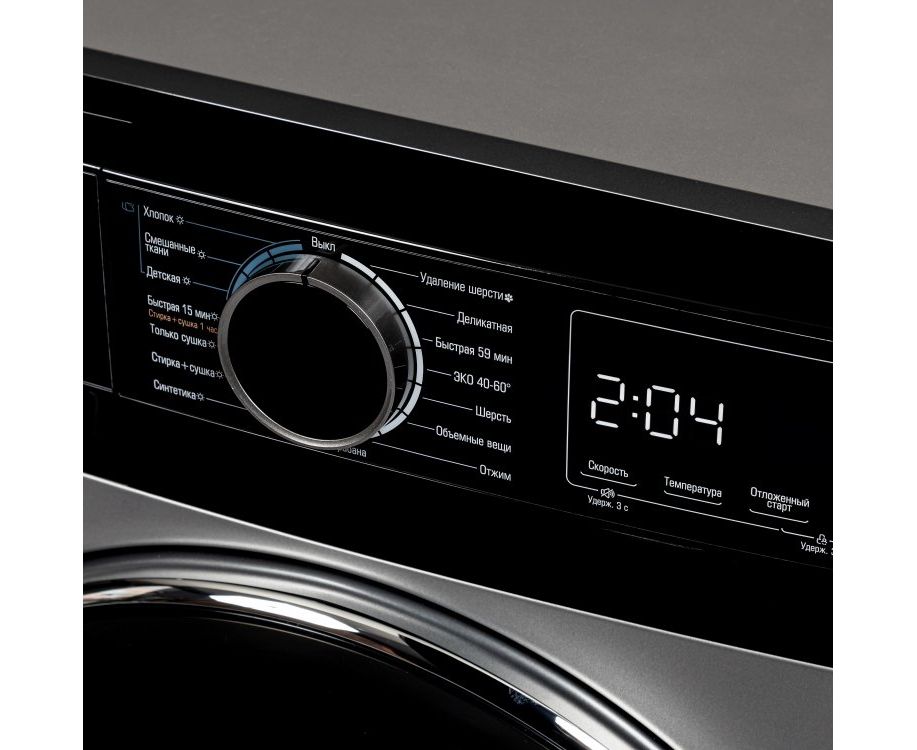 Программы стирки: Быстрая стирка, Отжим, Стирка изделий из шелка, Стирка изделий из хлопка, Высокотемпературная стирка, Стирка смешанных тканей, Стирка деликатных тканей, Стирка спортивной одежды, Стирка изделий из шерсти, Экономичная стирка, Стирка верхней одежды, Стирка детской одежды, Стирка изделий из синтетики